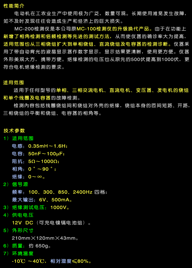 | 產(chǎn)品名稱:MC-200電動(dòng)機(jī)故障檢測儀 |