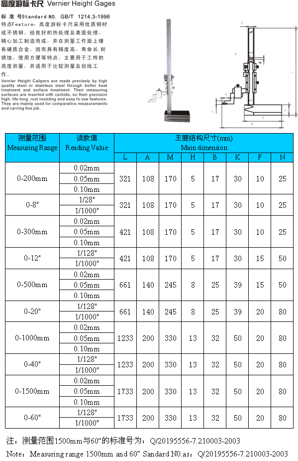 | 產(chǎn)品名稱:成量 高度游標(biāo)卡尺 |