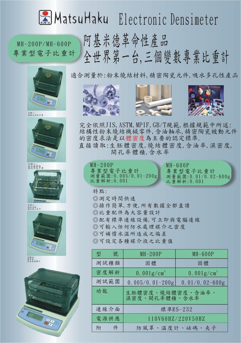 | 產(chǎn)品名稱:MH-200P MH-600P固體比重計 比重天平 |